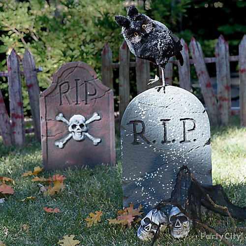 When we see the tombstone in the yard we must be very scared because the yard should not have the tombstone but in the Halloween decoration we should apply them in the yard.
