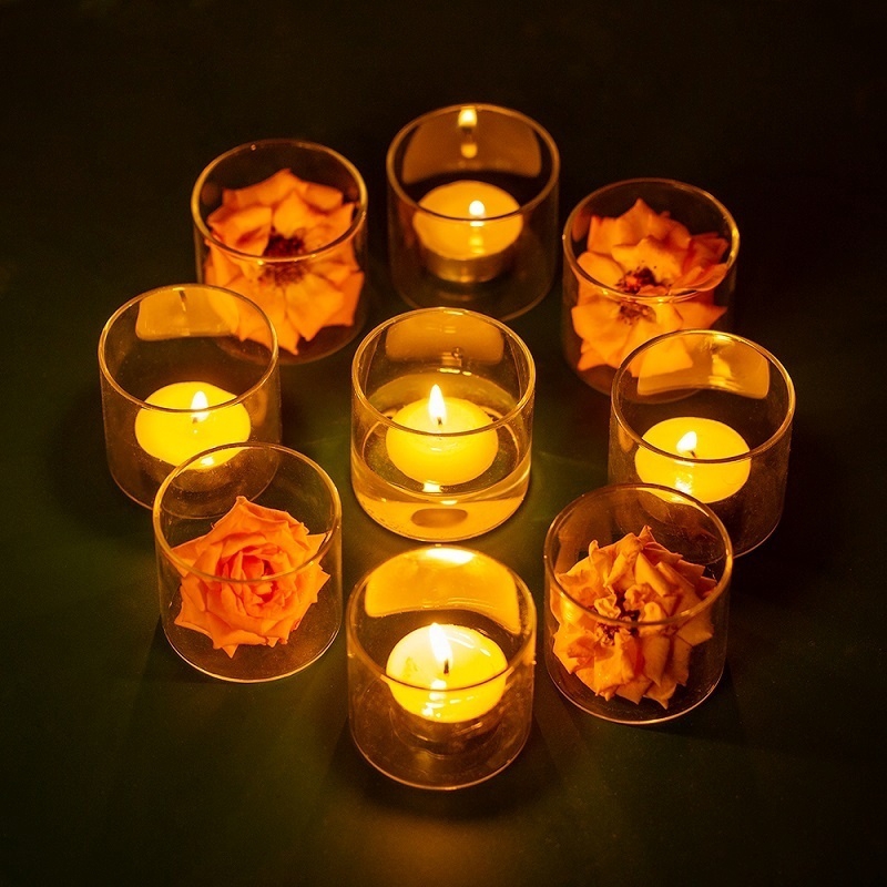 Kurrajong Farmhouse Set of 4 Small Glass Candle Holders 2 high in a Box Wedding Tea Light Candle Holders Vintage Boho Glass Candle Holders for Table Centre Piece Decor 45. Small Tea Light Candle Holders. Glass tea light holders make a subtle yet chic addition.