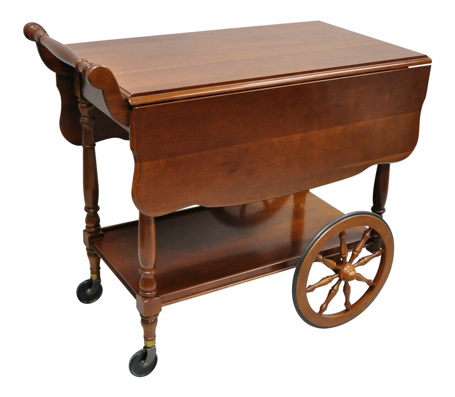 Vintage Monitor Solid Cherry Wood Colonial Style Rolling Bar Tea Cart Server Chairish