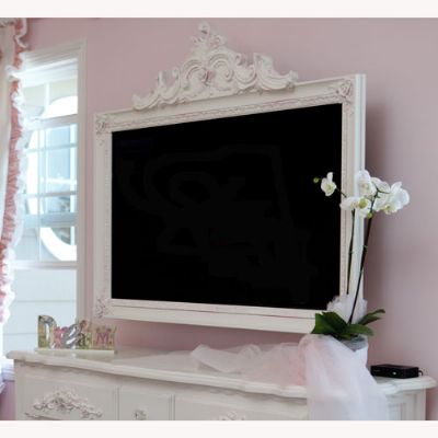 Bringing Art Back to Interiors has a more contemporary version of a white TV frame. Deco TV Frames Collection. Cabinet mounts to wall with either the metal hanging brackets attached or through holes drilled in the interior corner blocks with your mounting hardware.